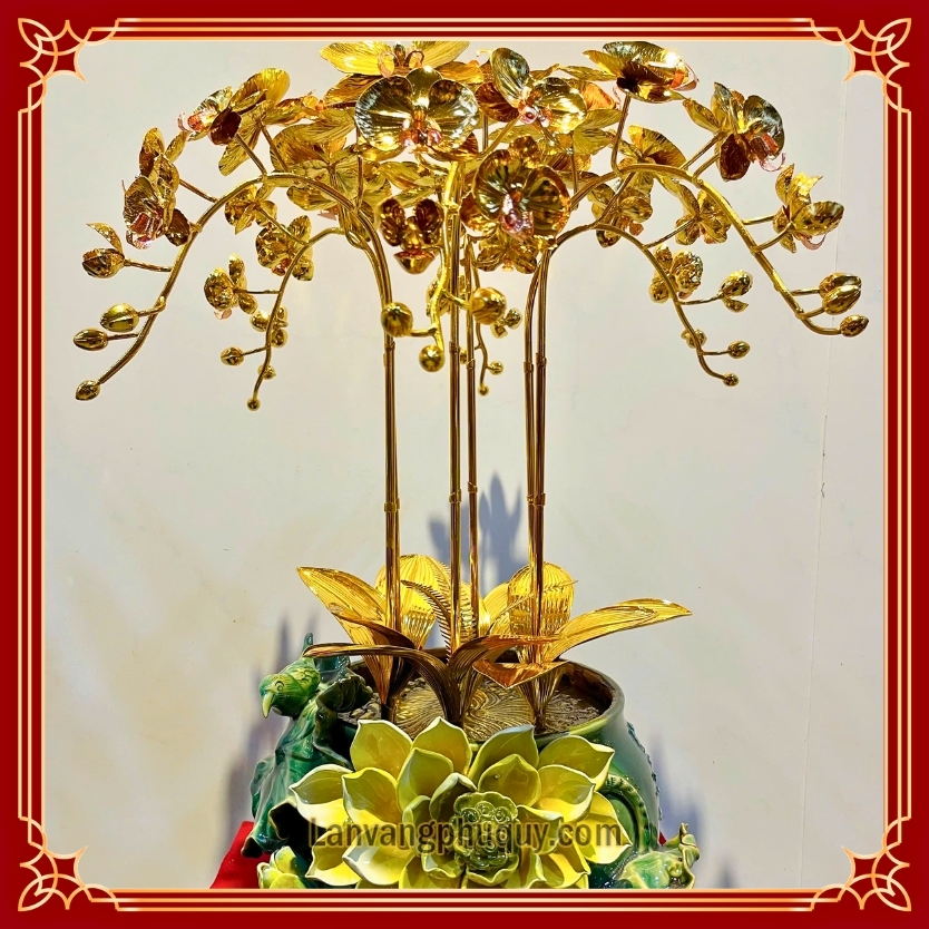 Cơ sở sản xuất Lan Vàng Phú Quý xin giới thiệu sản phẩm mẫu hoa phong thủy nghệ thuật cao cấp, lấy cảm hứng từ hoa lan hồ điệp vươn cao kết hợp đài sen tụ lộc, mang ý nghĩa sâu sắc về phú quý, thanh khiết và thịnh vượng bền lâu. Đây là dòng sản phẩm được ưa chuộng để trưng bày tại phòng khách, phòng làm việc lãnh đạo, sảnh công ty hoặc làm quà tặng sang trọng.