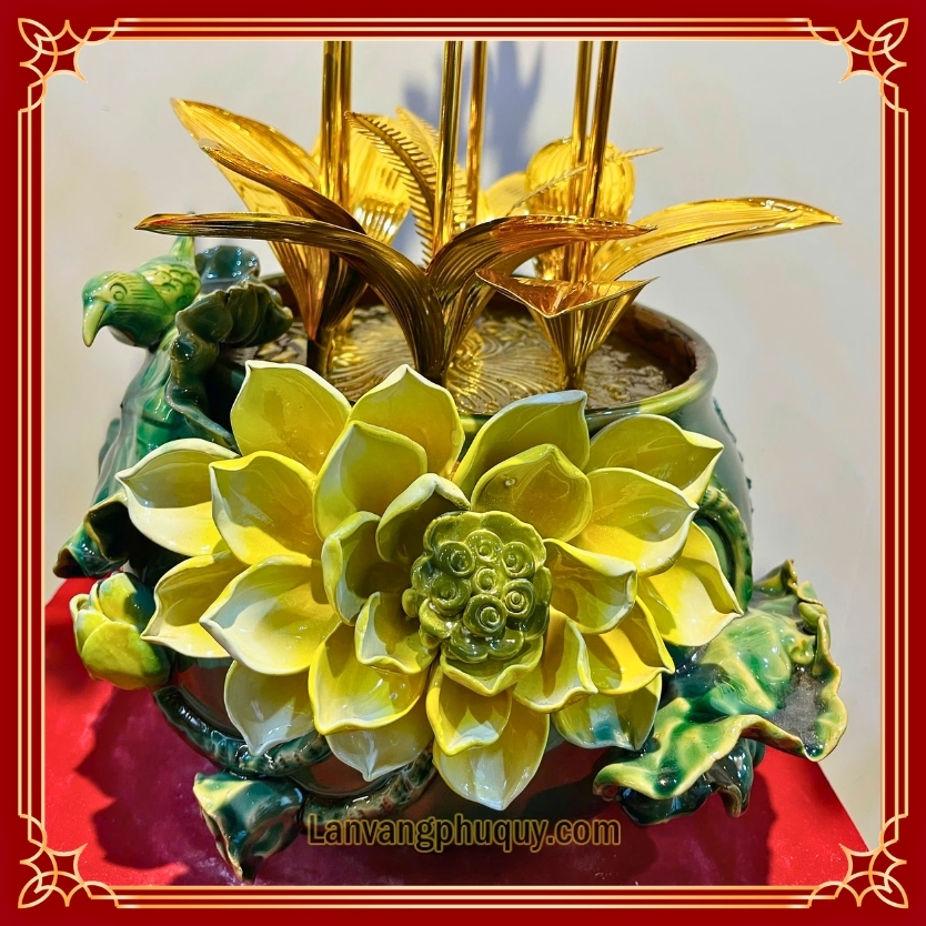 Điểm nhấn đặc biệt của tác phẩm là đài sen lớn nở rộ ở phần chậu, mang ý nghĩa: